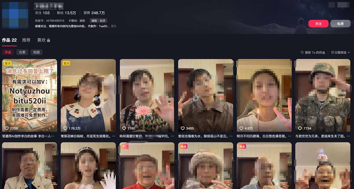 最近网上这种账号超级火爆,帮助亲人复活。或者人物替换等。