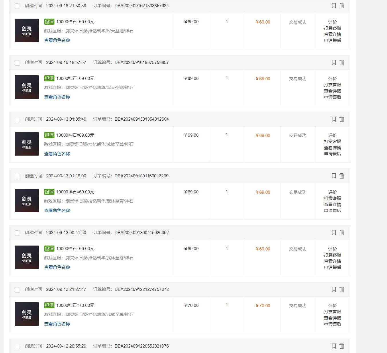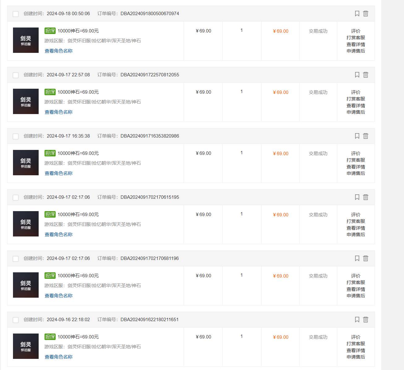 以下售卖记录都是我最近卖的 大家可以看看 日期也是最近的